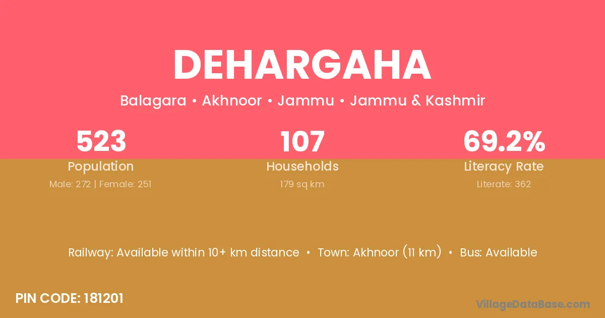 Akhnoor (11 km) is the nearest town to Dehargaha village for major economic activities and is located approximately 11 km away.