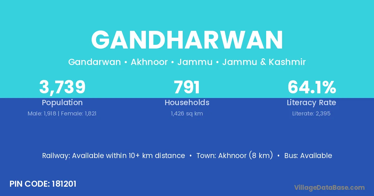 Akhnoor (8 km) is the nearest town to Gandharwan village for major economic activities and is located approximately 8 km away.