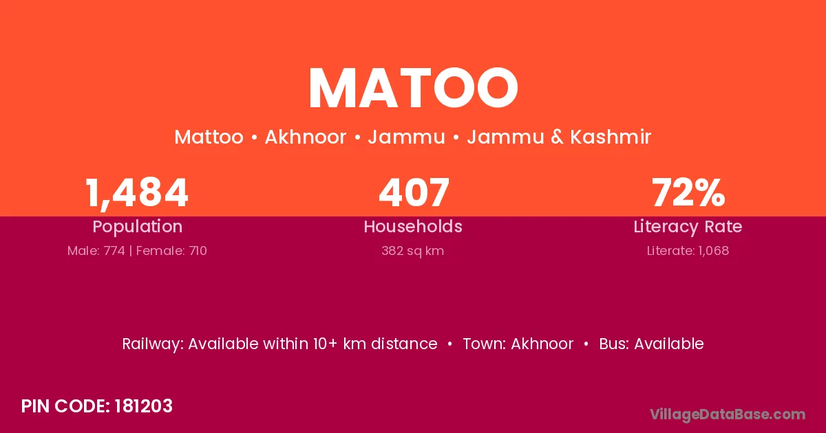 Akhnoor is the nearest town to Matoo village for major economic activities