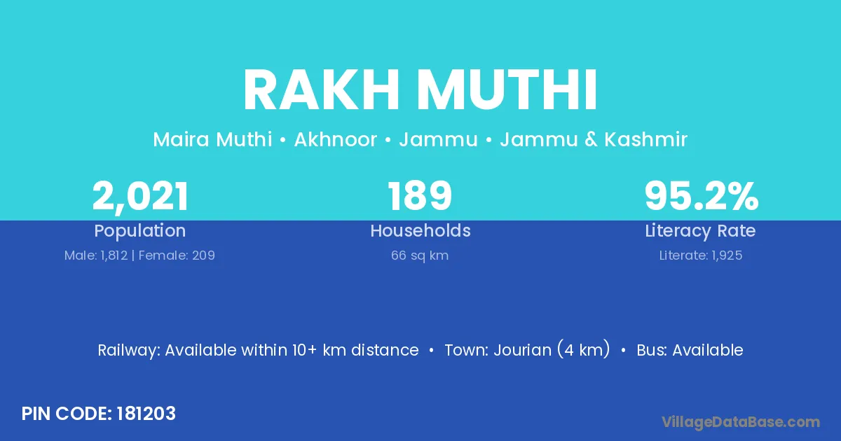 Jourian (4 km) is the nearest town to Rakh Muthi village for major economic activities and is located approximately 4 km away.