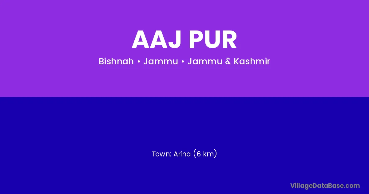Arina (6 km) is the nearest town to Aaj Pur village for major economic activities and is located approximately 6 km away.