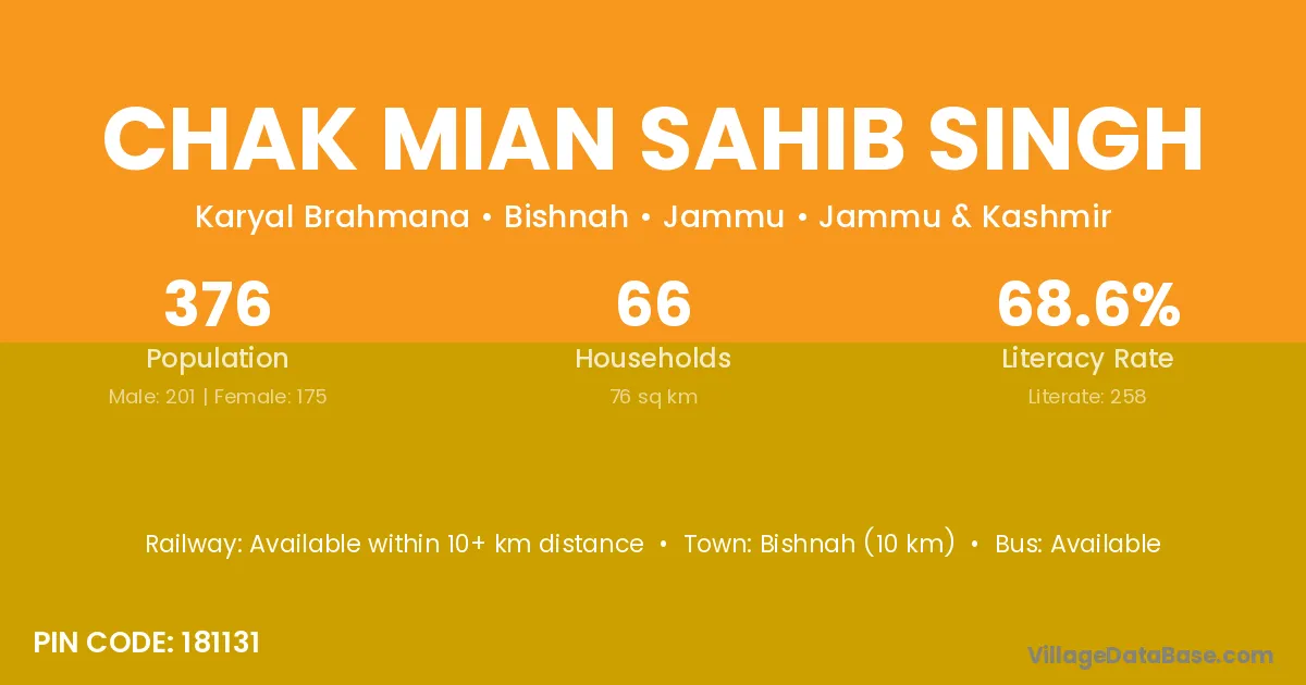 There are approximately 66 households in Chak Mian Sahib Singh village.