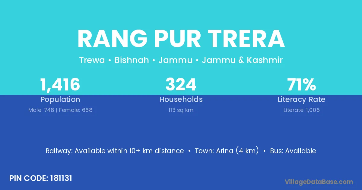 Rang Pur Trera village has a total population of 1,416 people, of which 748 are males and 668 are females.