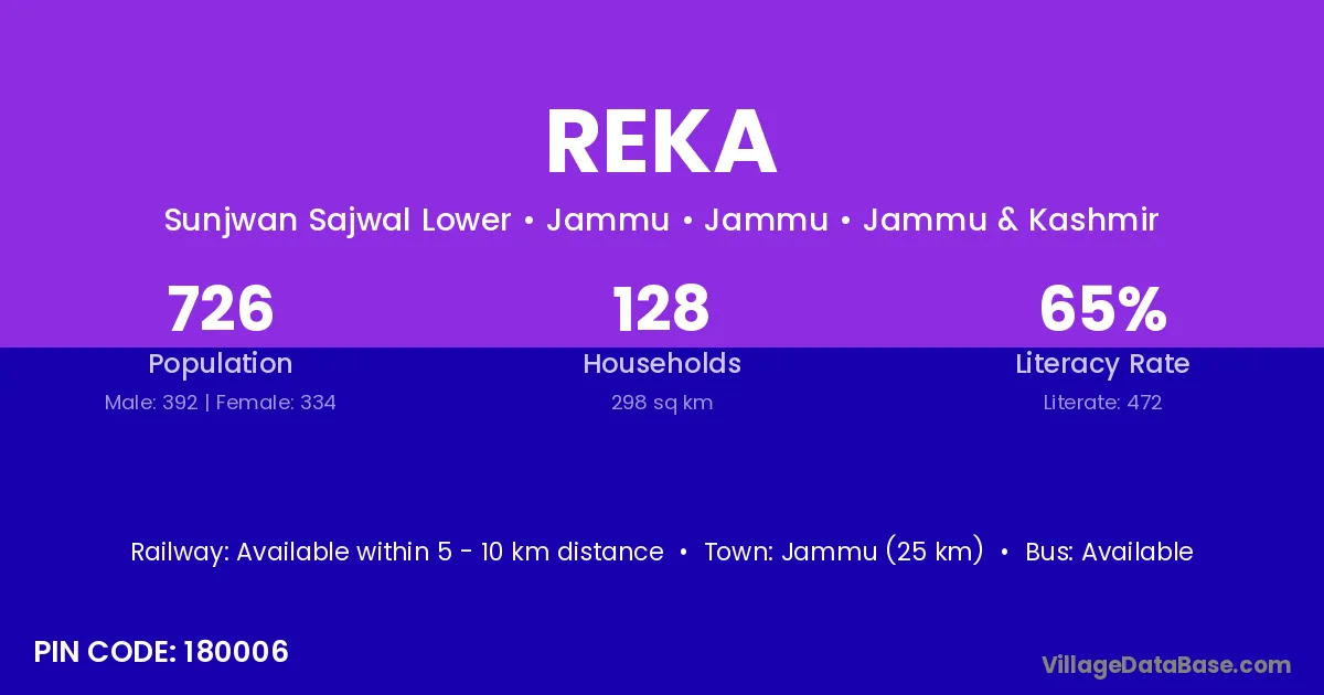 Jammu (25 km) is the nearest town to Reka village for major economic activities and is located approximately 25 km away.