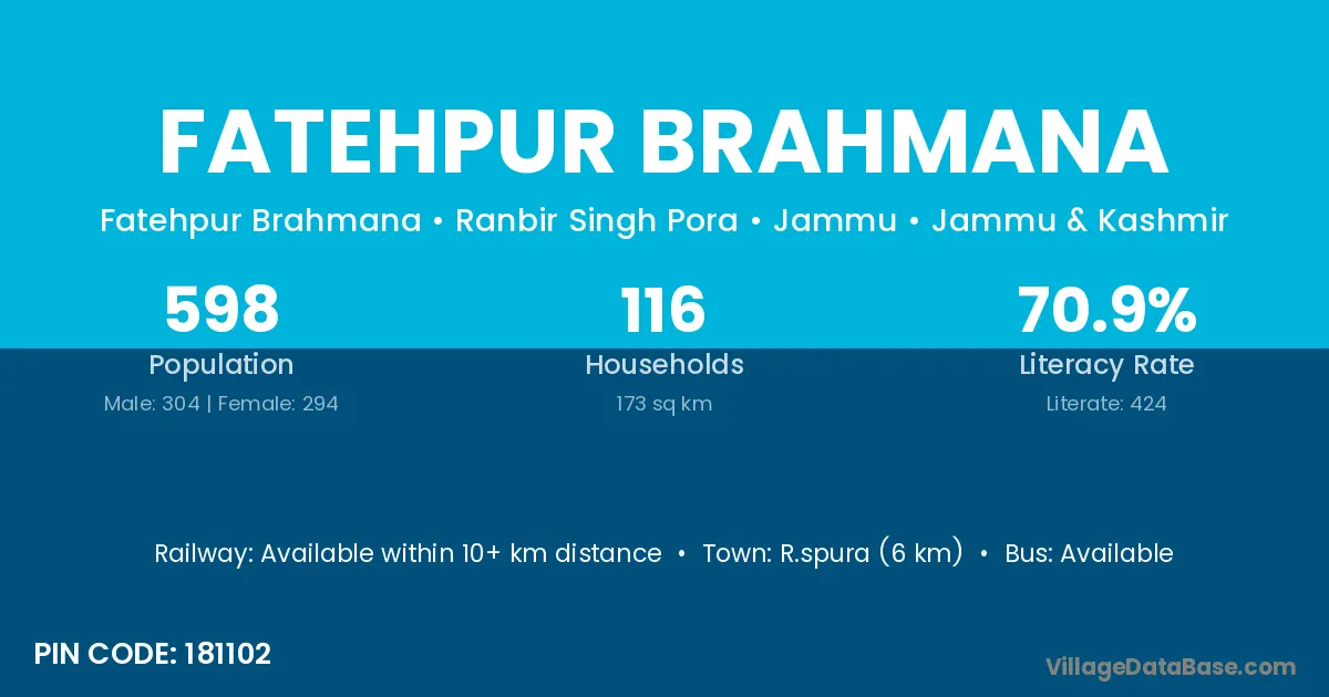 Fatehpur Brahmana village has a total population of 598 people, of which 304 are males and 294 are females.