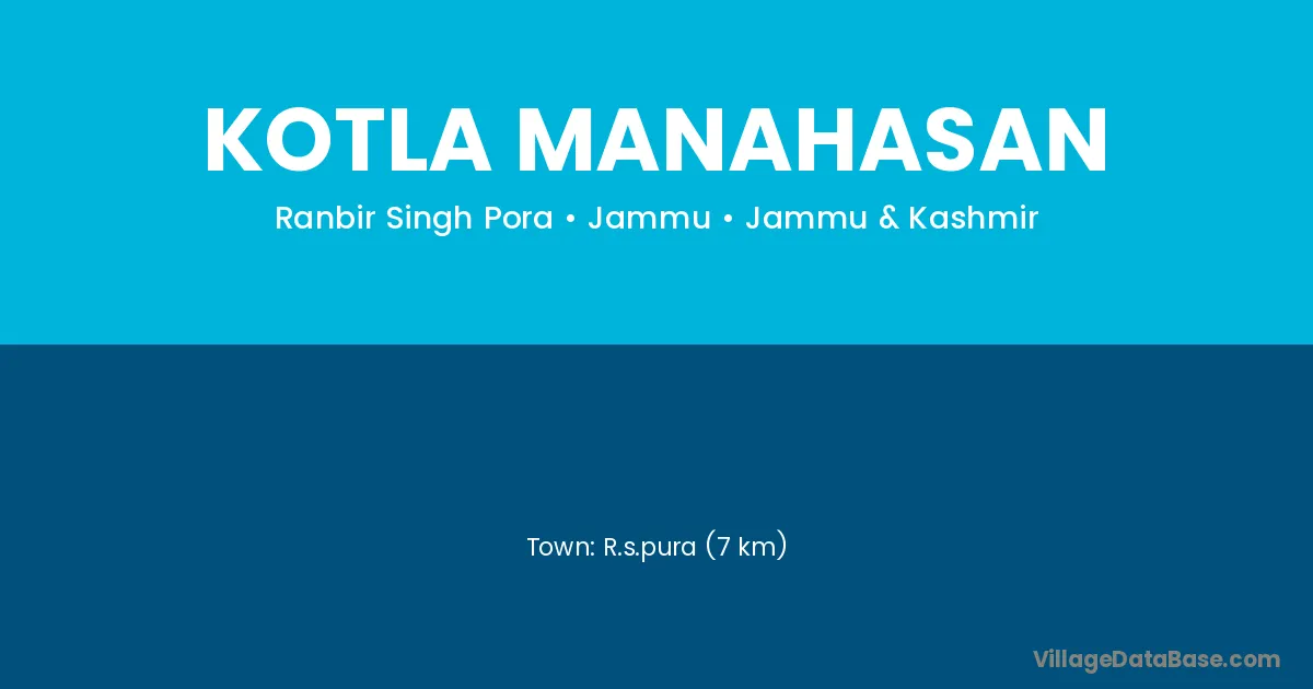 R.s.pura (7 km) is the nearest town to Kotla Manahasan village for major economic activities and is located approximately 7 km away.