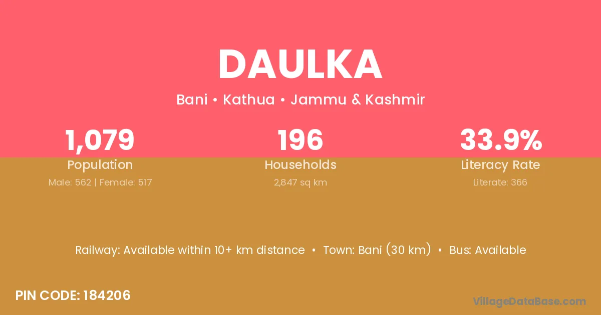 Bani (30 km) is the nearest town to Daulka village for major economic activities and is located approximately 30 km away.