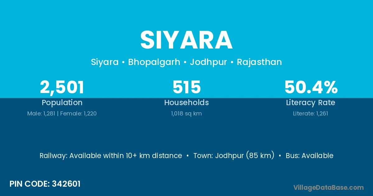 According to Census 2011 information, the village code of Siyara village is 184206.