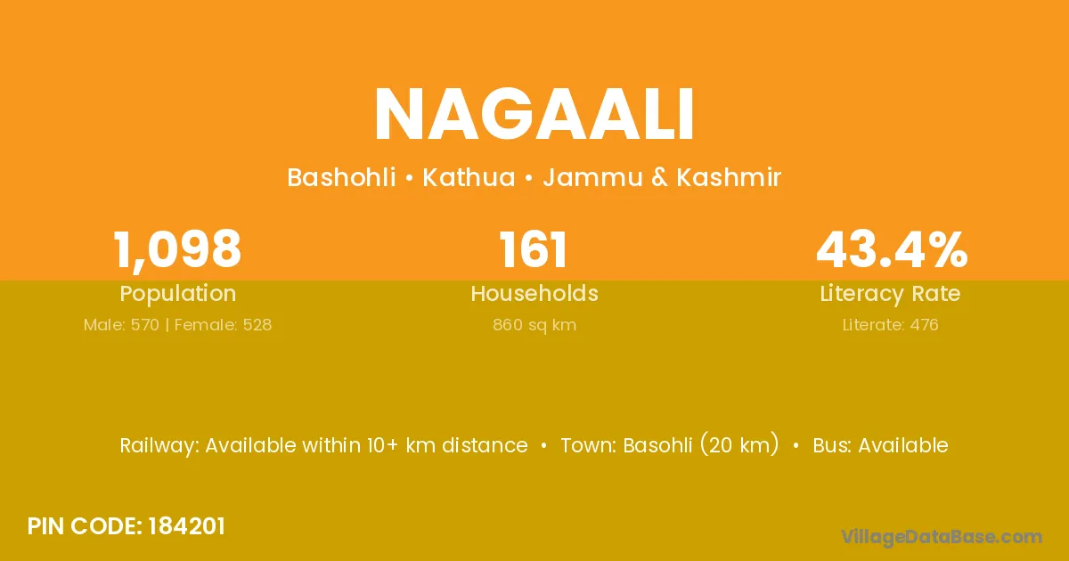 Basohli (20 km) is the nearest town to Nagaali village for major economic activities and is located approximately 20 km away.