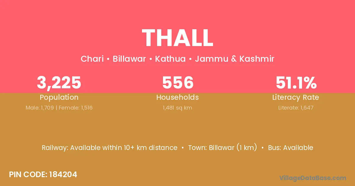 Billawar (1 km) is the nearest town to Thall village for major economic activities and is located approximately 1 km away.