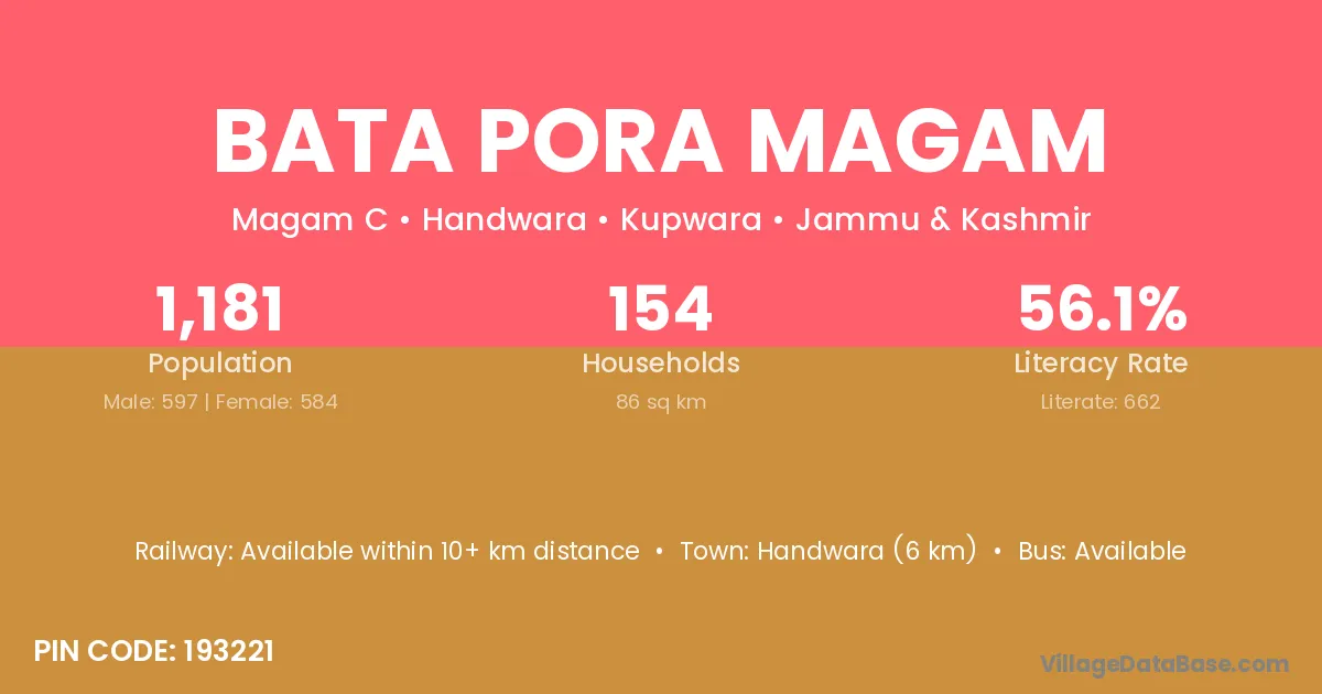 Handwara (6 km) is the nearest town to Bata Pora Magam village for major economic activities and is located approximately 6 km away.