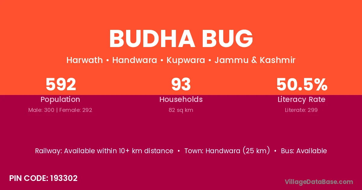 Handwara (25 km) is the nearest town to Budha Bug village for major economic activities and is located approximately 25 km away.