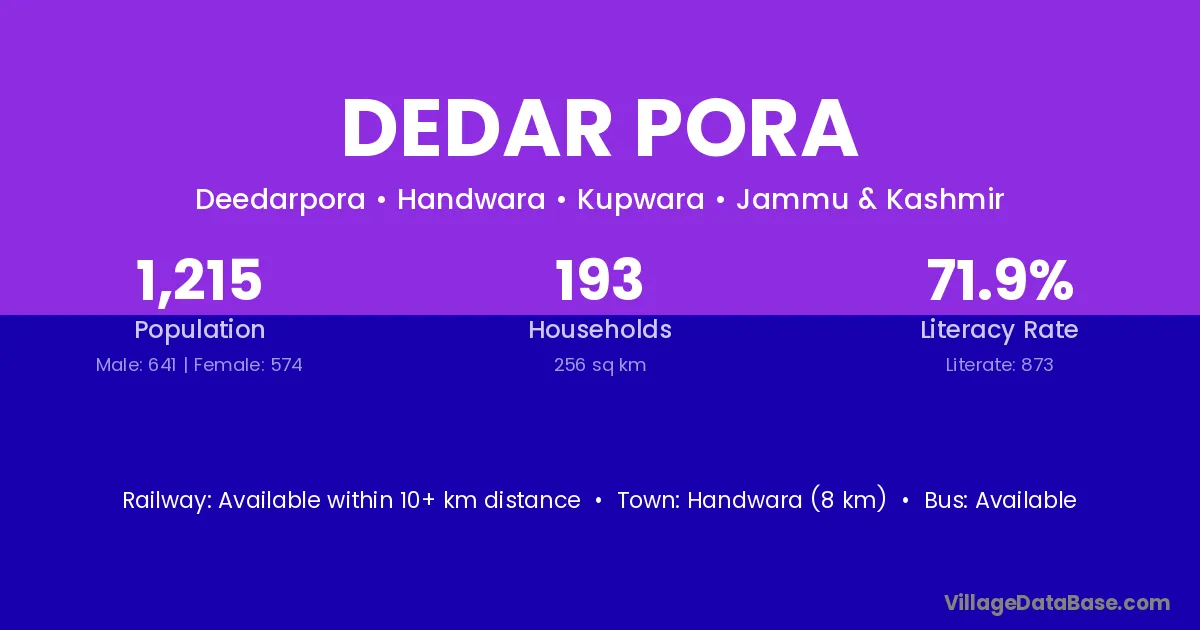 Handwara (8 km) is the nearest town to Dedar Pora village for major economic activities and is located approximately 8 km away.