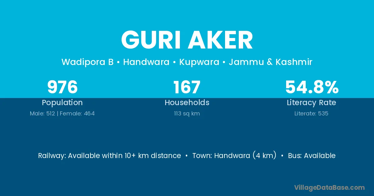 Handwara (4 km) is the nearest town to Guri Aker village for major economic activities and is located approximately 4 km away.