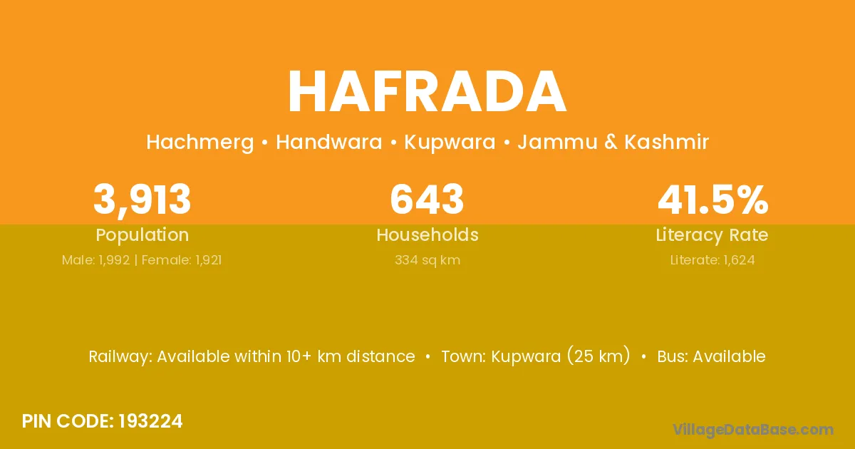 Kupwara (25 km) is the nearest town to Hafrada village for major economic activities and is located approximately 25 km away.