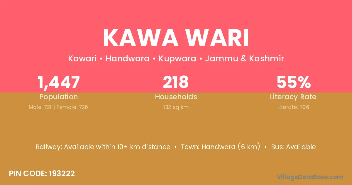 Handwara (6 km) is the nearest town to Kawa Wari village for major economic activities and is located approximately 6 km away.