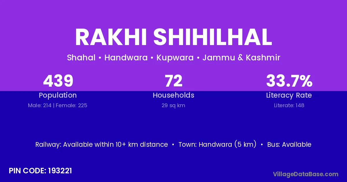Handwara (5 km) is the nearest town to Rakhi Shihilhal village for major economic activities and is located approximately 5 km away.