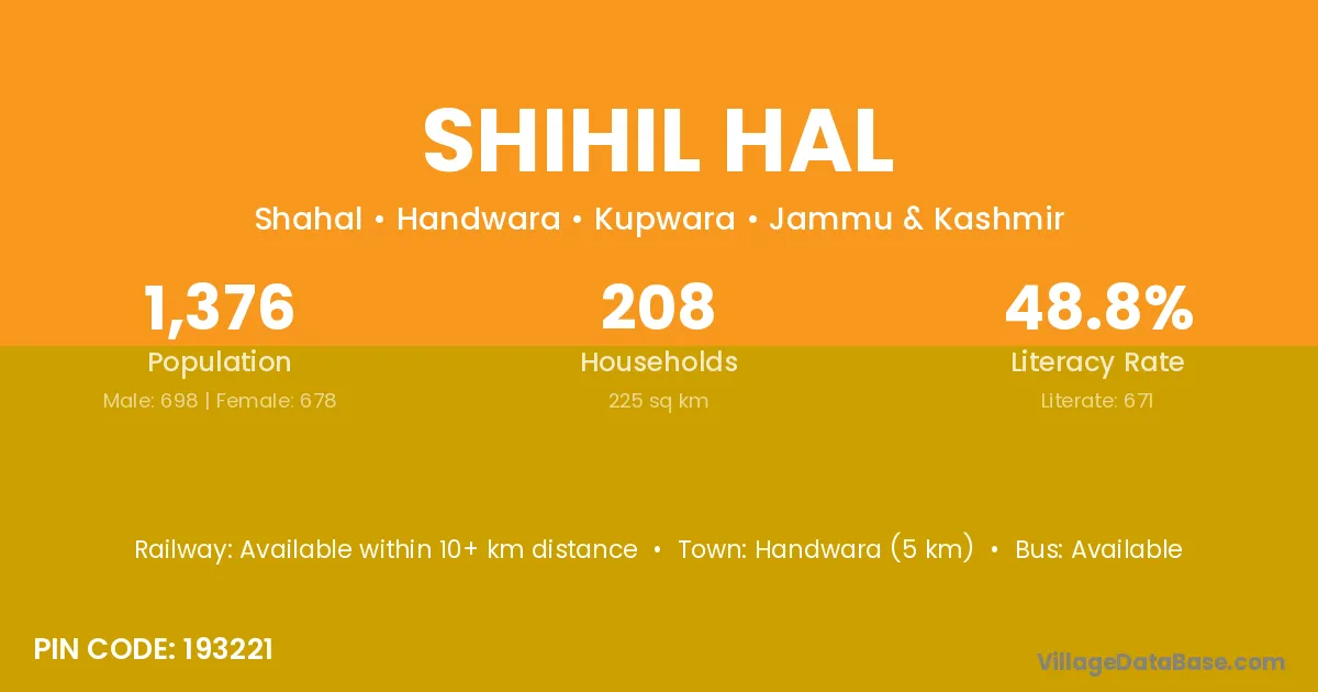 Handwara (5 km) is the nearest town to Shihil Hal village for major economic activities and is located approximately 5 km away.