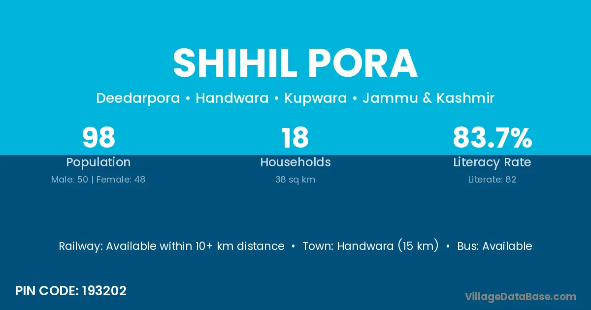 Handwara (15 km) is the nearest town to Shihil Pora village for major economic activities and is located approximately 15 km away.