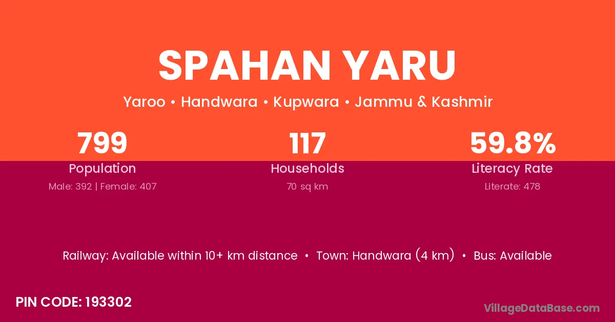 Handwara (4 km) is the nearest town to Spahan Yaru village for major economic activities and is located approximately 4 km away.