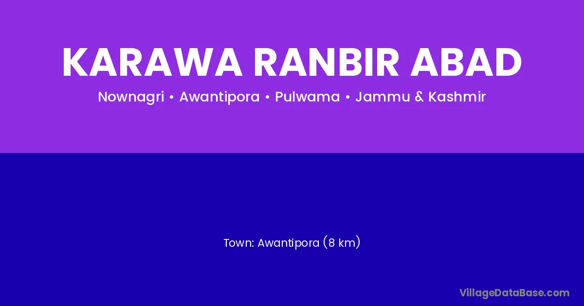 Awantipora (8 km) is the nearest town to Karawa Ranbir Abad village for major economic activities and is located approximately 8 km away.