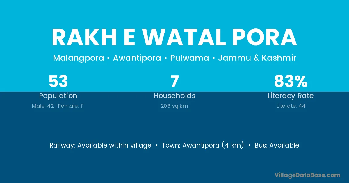 Rakh E Watal Pora village has a total population of 53 people, of which 42 are males and 11 are females.