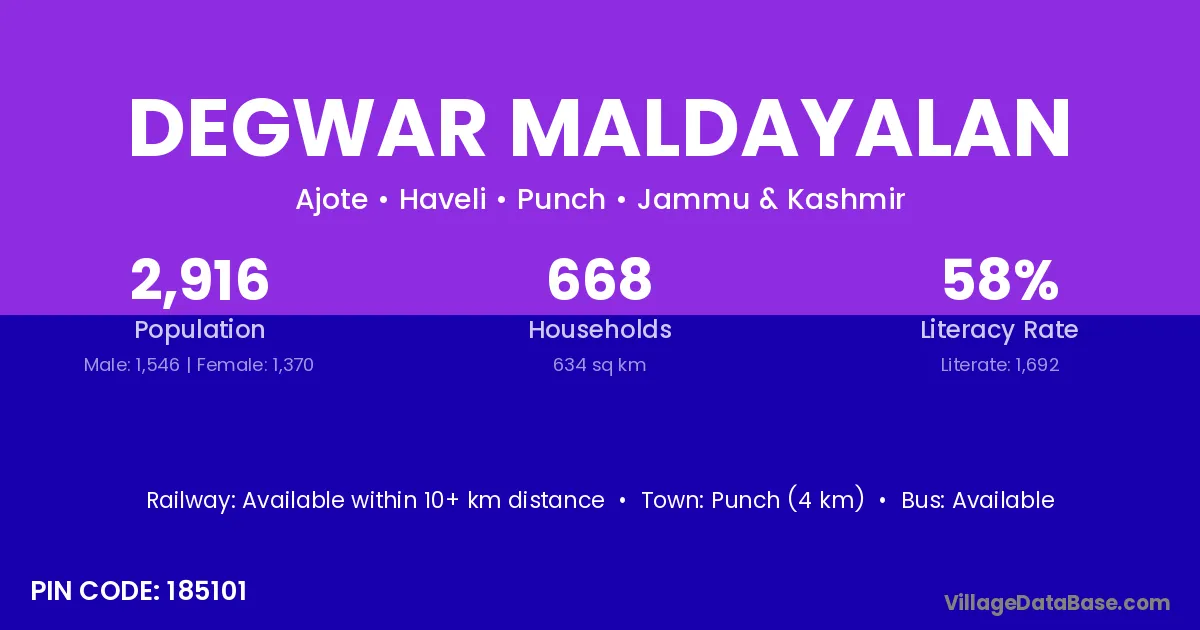 Punch (4 km) is the nearest town to Degwar Maldayalan village for major economic activities and is located approximately 4 km away.