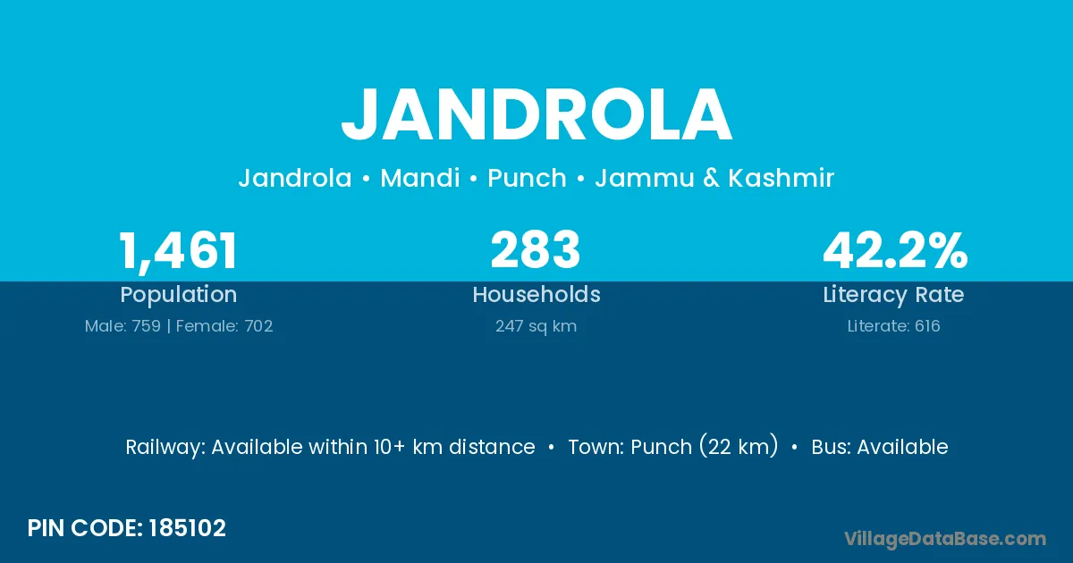 Punch (22 km) is the nearest town to Jandrola village for major economic activities and is located approximately 22 km away.