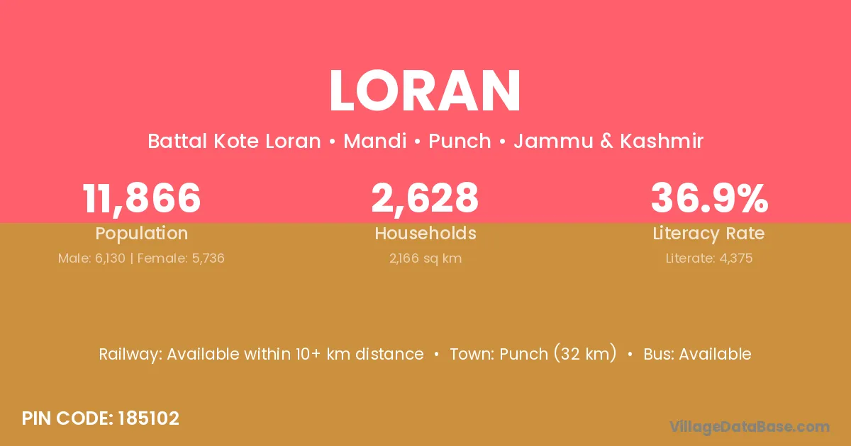 Punch (32 km) is the nearest town to Loran village for major economic activities and is located approximately 32 km away.