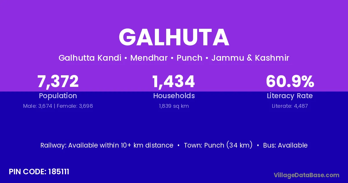 Punch (34 km) is the nearest town to Galhuta village for major economic activities and is located approximately 34 km away.