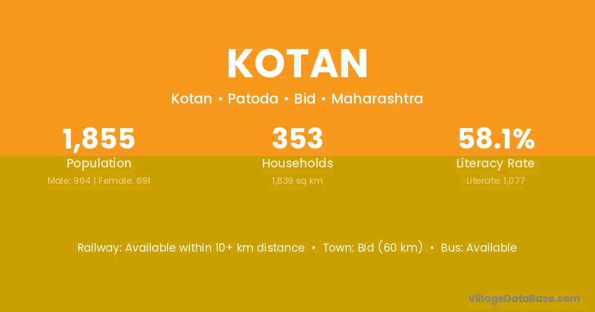 According to Census 2011 information, the village code of Kotan village is 185111.