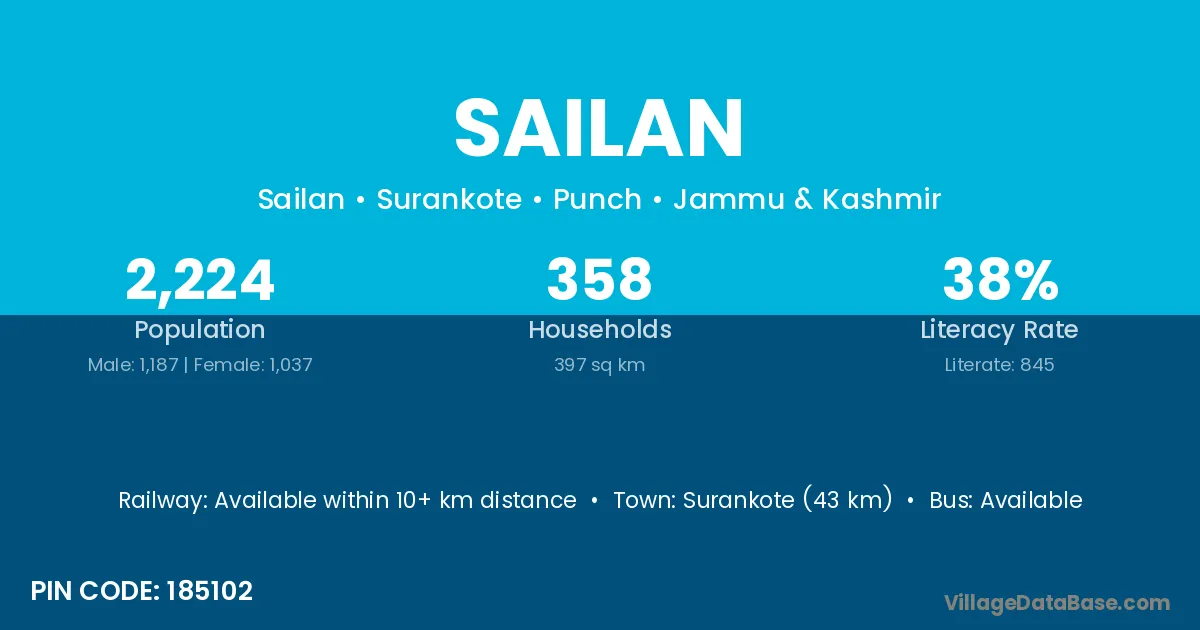 Surankote (43 km) is the nearest town to Sailan village for major economic activities and is located approximately 43 km away.