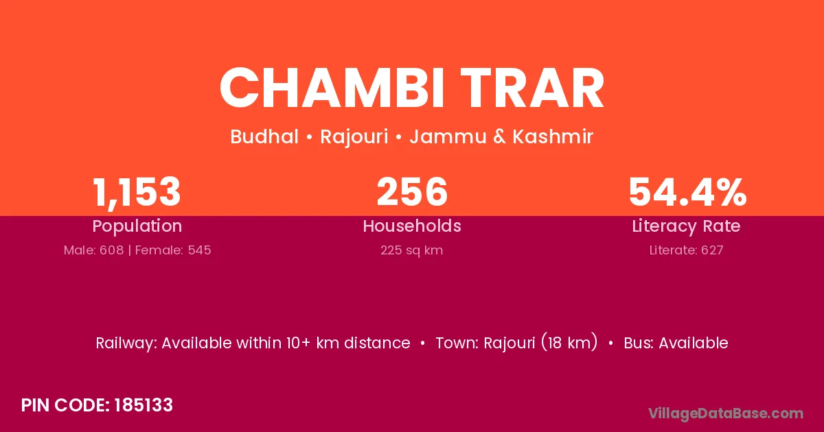 Rajouri (18 km) is the nearest town to Chambi Trar village for major economic activities and is located approximately 18 km away.