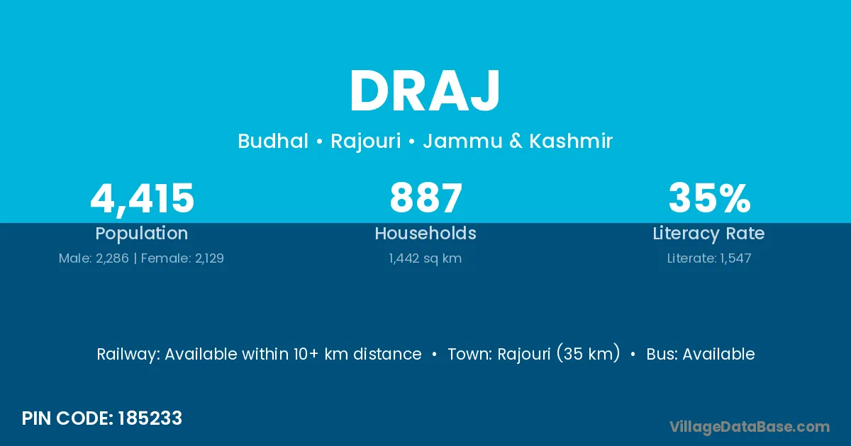 Rajouri (35 km) is the nearest town to Draj village for major economic activities and is located approximately 35 km away.