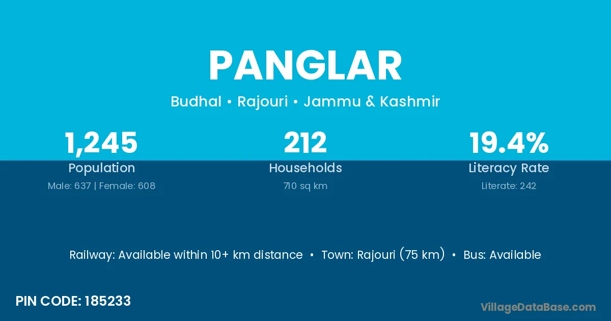 Rajouri (75 km) is the nearest town to Panglar village for major economic activities and is located approximately 75 km away.
