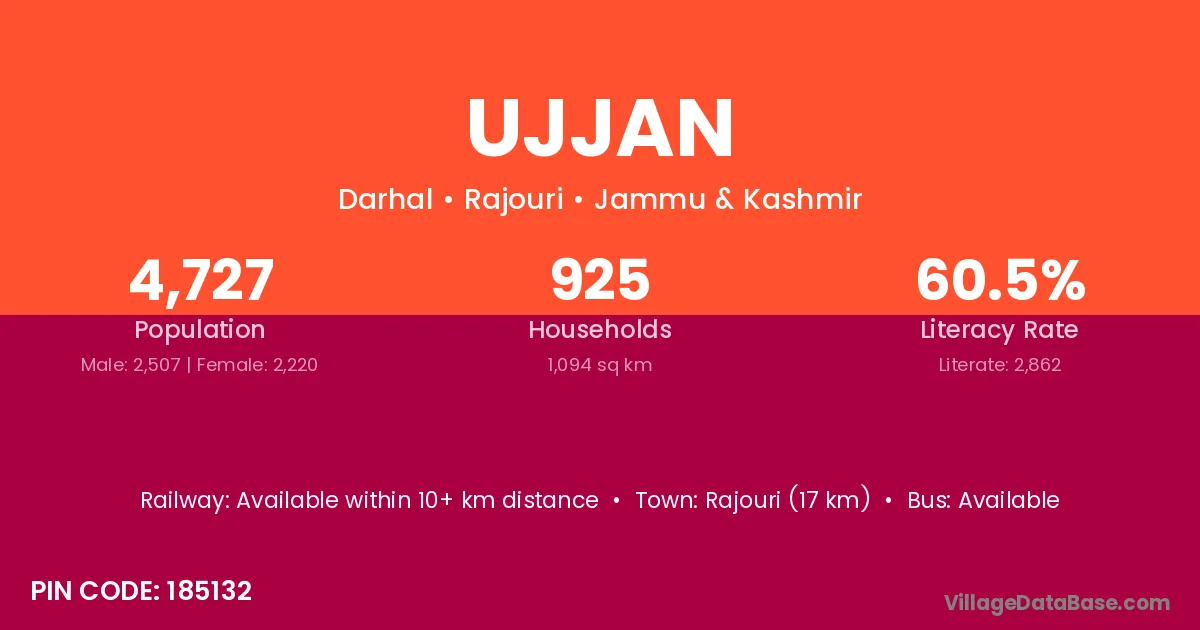 Rajouri (17 km) is the nearest town to Ujjan village for major economic activities and is located approximately 17 km away.