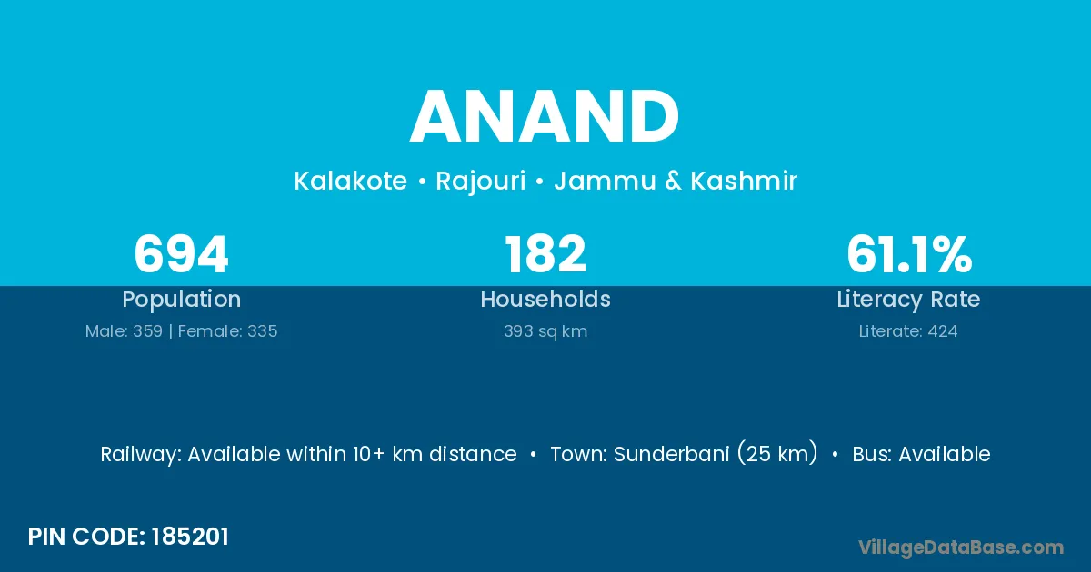 Sunderbani (25 km) is the nearest town to Anand village for major economic activities and is located approximately 25 km away.