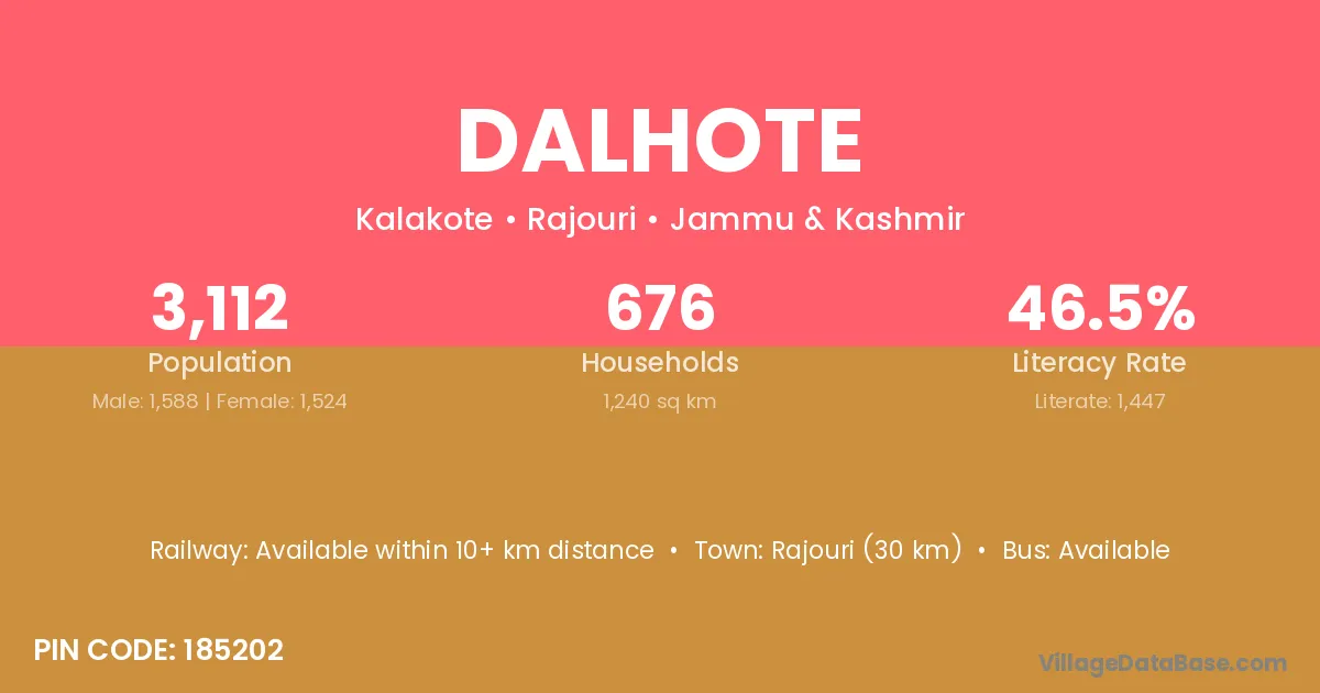 Rajouri (30 km) is the nearest town to Dalhote village for major economic activities and is located approximately 30 km away.
