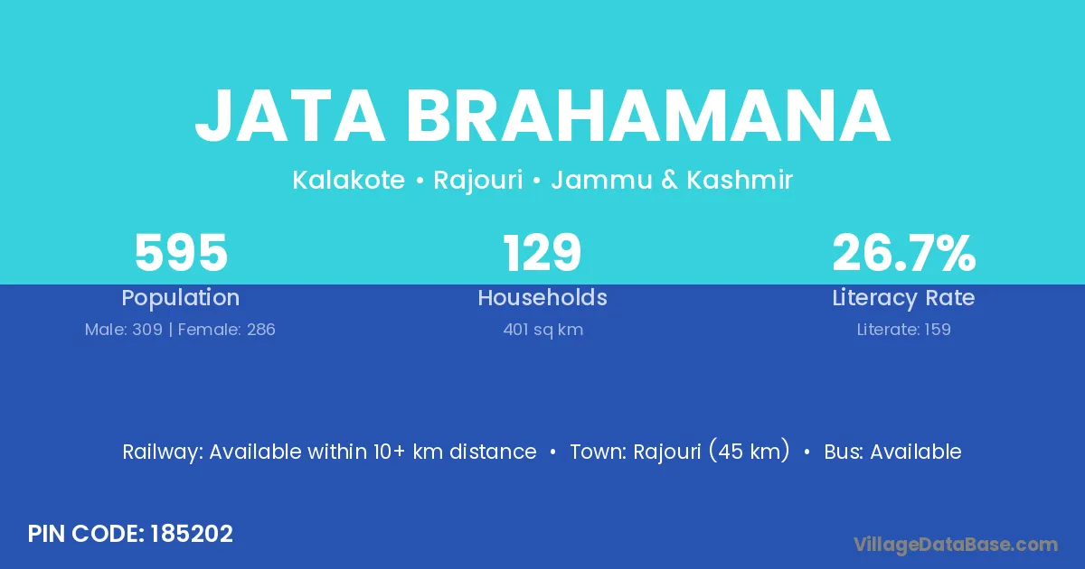 Rajouri (45 km) is the nearest town to Jata Brahamana village for major economic activities and is located approximately 45 km away.