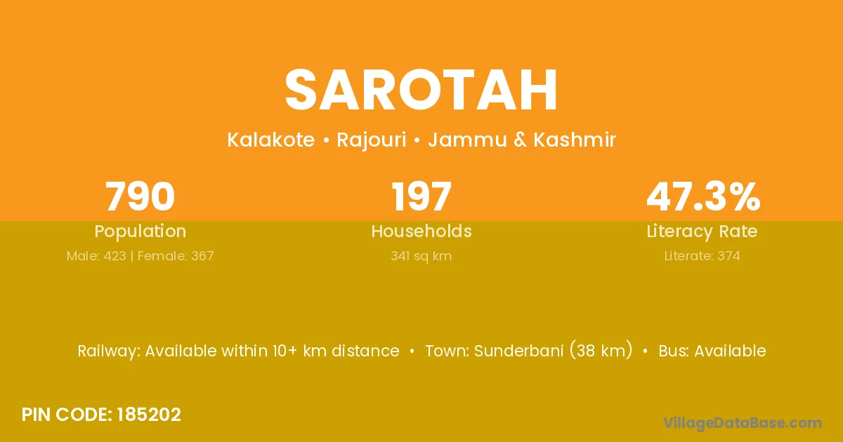 Sunderbani (38 km) is the nearest town to Sarotah village for major economic activities and is located approximately 38 km away.