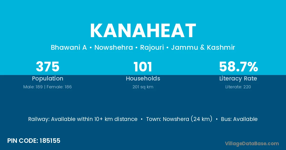 Nowshera (24 km) is the nearest town to Kanaheat village for major economic activities and is located approximately 24 km away.