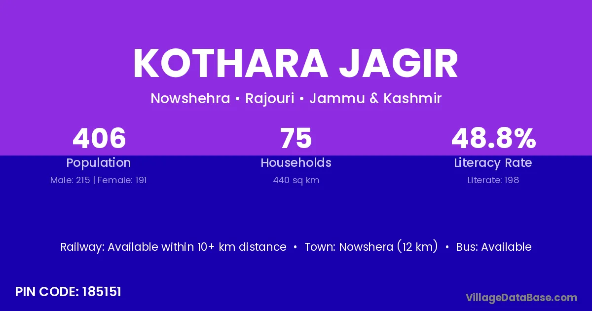 According to Census 2011 information, the village code of Kothara Jagir village is 185151.