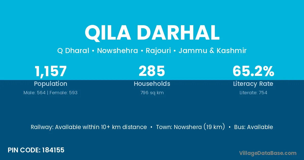 Qila Darhal village has a total population of 1,157 people, of which 564 are males and 593 are females.