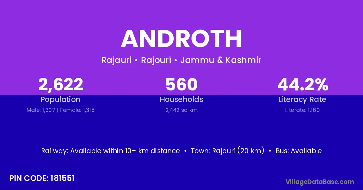 Rajouri (20 km) is the nearest town to Androth village for major economic activities and is located approximately 20 km away.