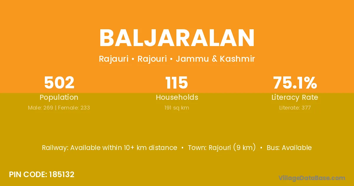 Rajouri (9 km) is the nearest town to Baljaralan village for major economic activities and is located approximately 9 km away.
