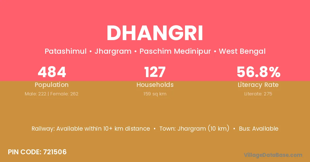 Dhangri village has a total population of 3,553 people, of which 1,879 are males and 1,674 are females.