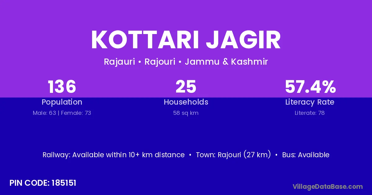 Rajouri (27 km) is the nearest town to Kottari Jagir village for major economic activities and is located approximately 27 km away.