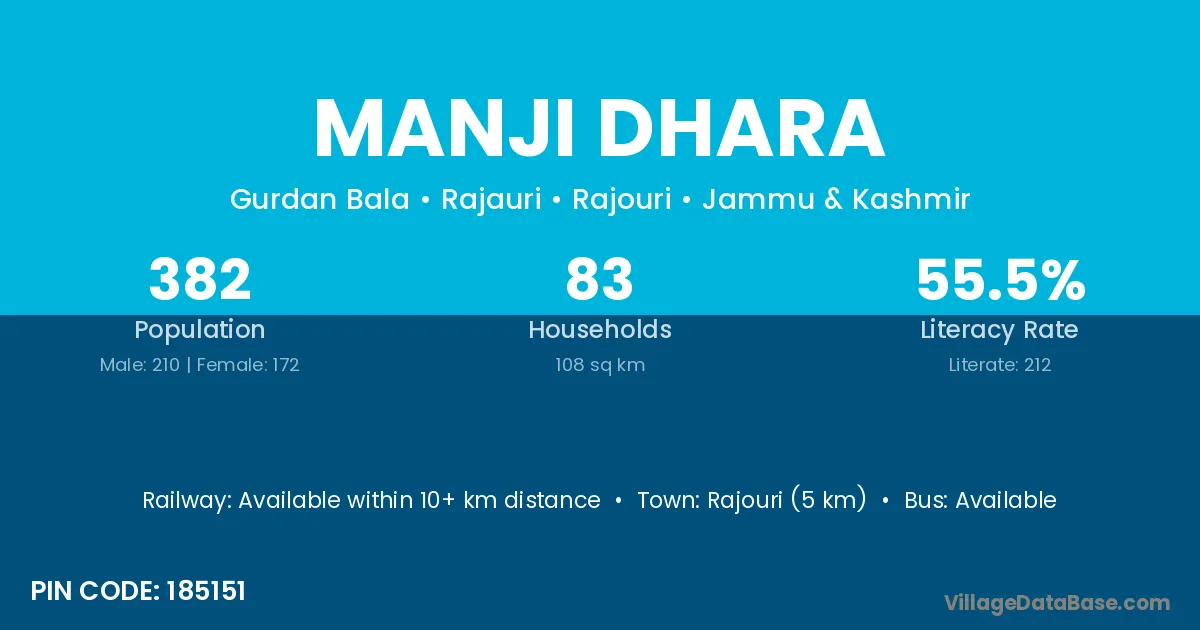 Rajouri (5 km) is the nearest town to Manji Dhara village for major economic activities and is located approximately 5 km away.