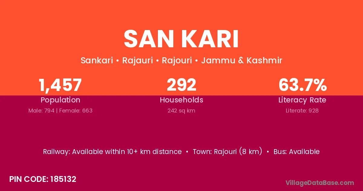 Rajouri (8 km) is the nearest town to San Kari village for major economic activities and is located approximately 8 km away.
