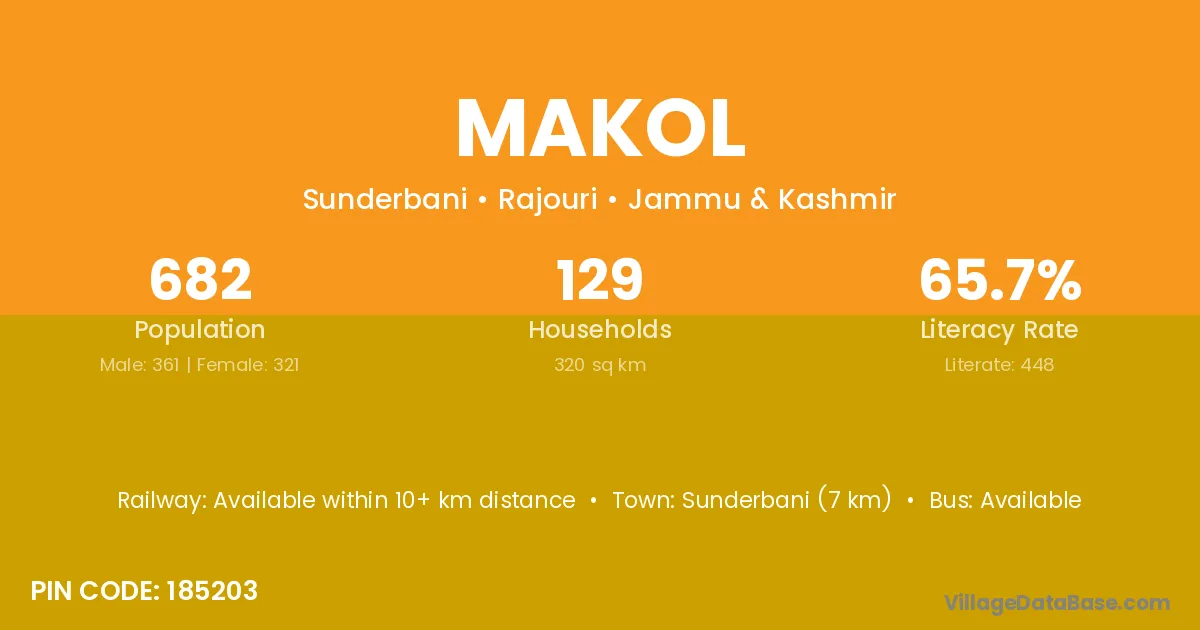 Sunderbani (7 km) is the nearest town to Makol village for major economic activities and is located approximately 7 km away.
